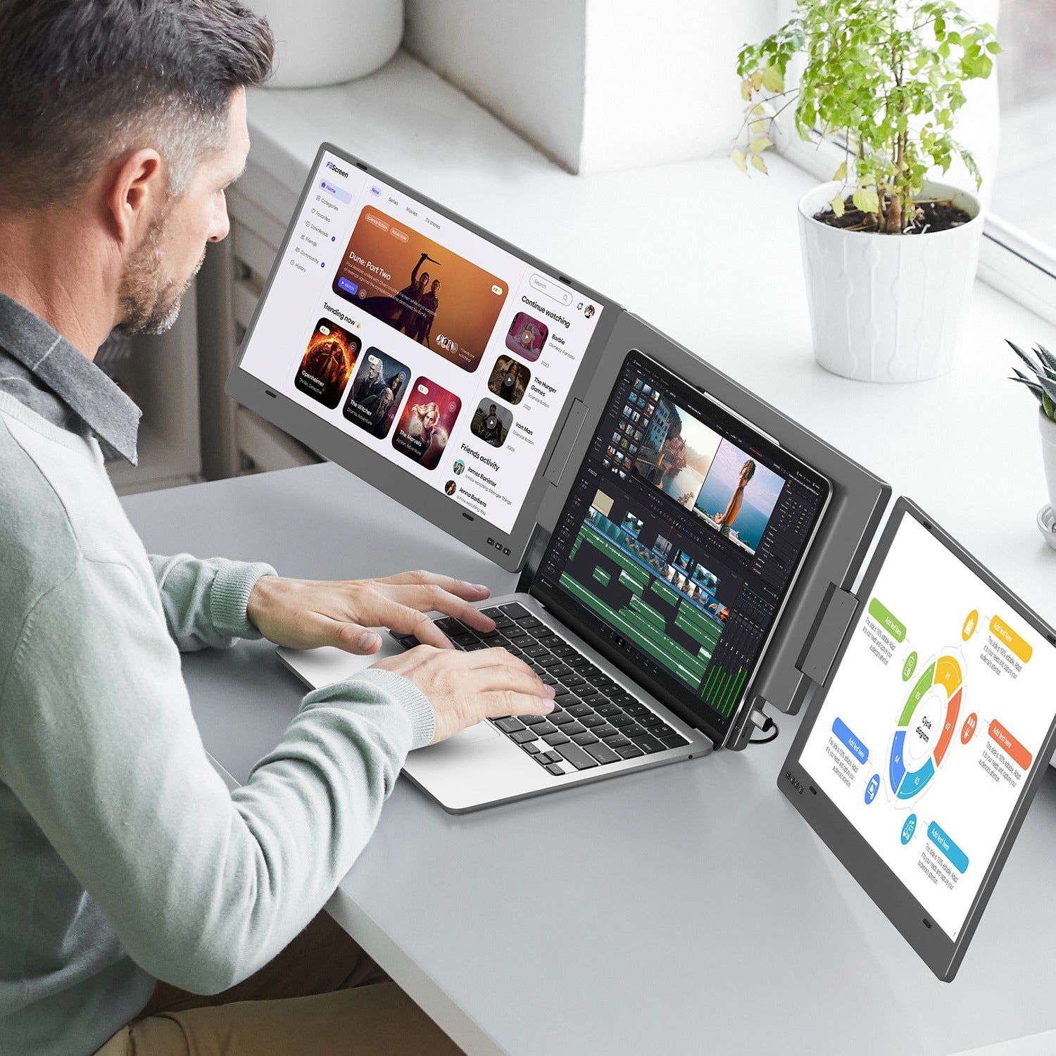 The KYY K5-3 Series portable monitor a cutting-edge lineup that seamlessly combines portability with exceptional display features. Boasting a 14-inch screen, KYY portable monitor stands out for its compact and lightweight design, making it effortlessly portable for users on the go. With a luminance of 350 nits and an impressive contrast ratio of 1500:1, the display delivers stunning visuals with vibrant colors and deep blacks.